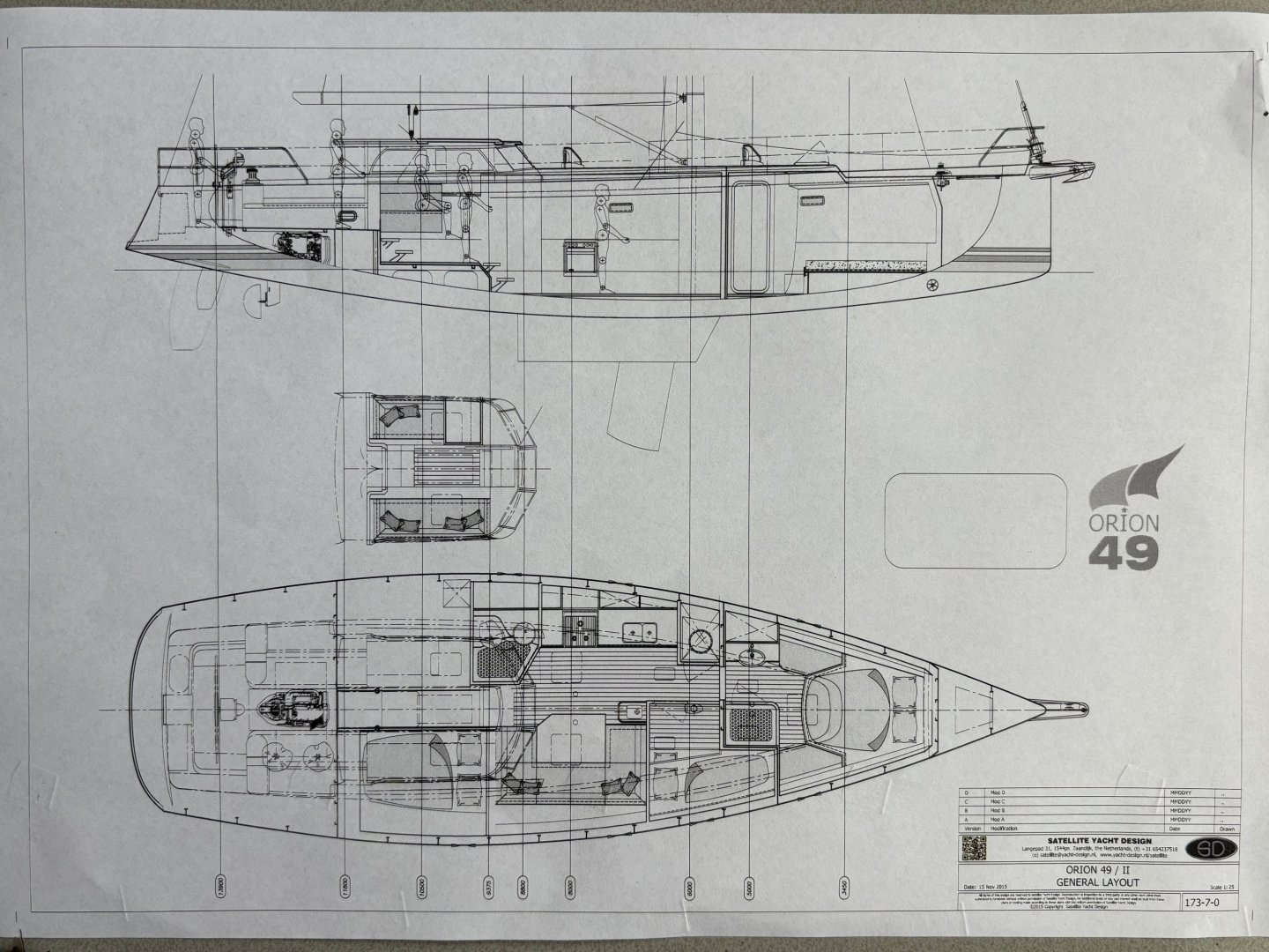 The Orion 49 was developed by H&H Shipbuilding and designed by Kees van de Stadt (Satellite Yacht Design – www.yacht-design.nl). The hulls of hull number 1, the cruiser version, and hull
